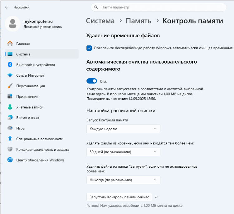 Стоит отметить, что в меню Память имеется блок Управления хранилищем, а в нём Контроль памяти. В нём можно активировать и настроить Автоматическую очистку пользовательского содержимого по расписанию.